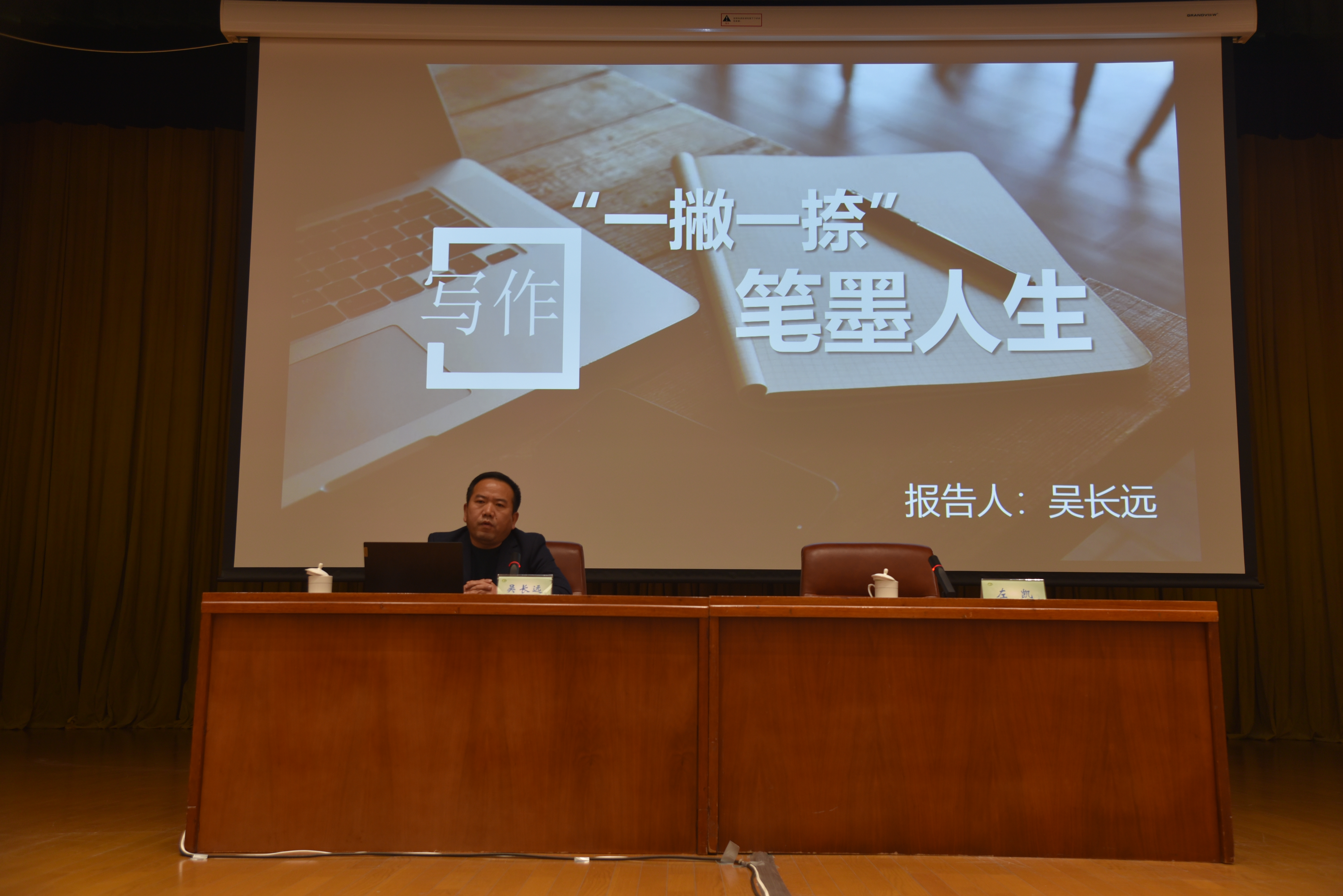 山东省卫生健康宣教中心党委书记、主任吴长远做“一撇一捺笔墨人生——浅谈新闻写作”专题讲座。他结合自己多年来所见所感所悟所成,从“一篇文”引发的“蝴蝶效应”,“一句话”铸就的“笔墨人生”,分析了“初写者”的“四大通病”,就“笔杆子”的“最终炼成”,新闻宣传工作者“五要诀”,“好新闻”“六要素”六个方面对如何精确确定主题和体例、如何谋篇布局、如何旁征博引、如何使文稿浑然天成,进行精彩授课,详细讲解了自己成为“笔杆子”的方法和过程,面对面教给大家面对写作问题时应该怎么办,怎样才能写好一篇公文,通过“自我解读”、实例讲解,让大家更加直观地感受到“笔墨人生”的魅力,增强了参训人员提升写作水平的信心和决心。