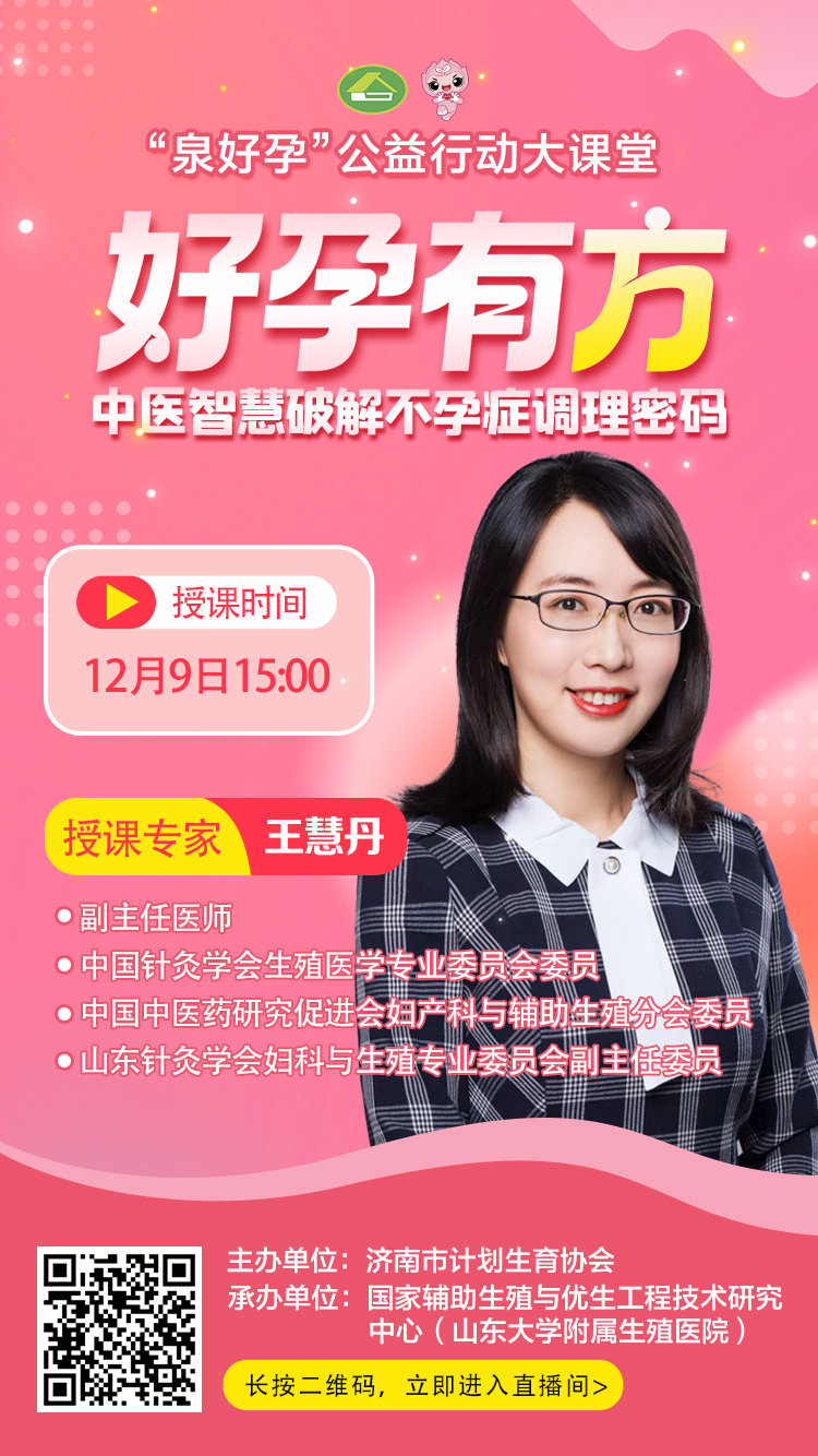 “泉好孕”第八期课堂由中国针灸学会生殖医学专业委员会委员王慧丹主讲,题目是《好孕有方——中医智慧破解不孕症调理密码》,欢迎广大群众收听收看!