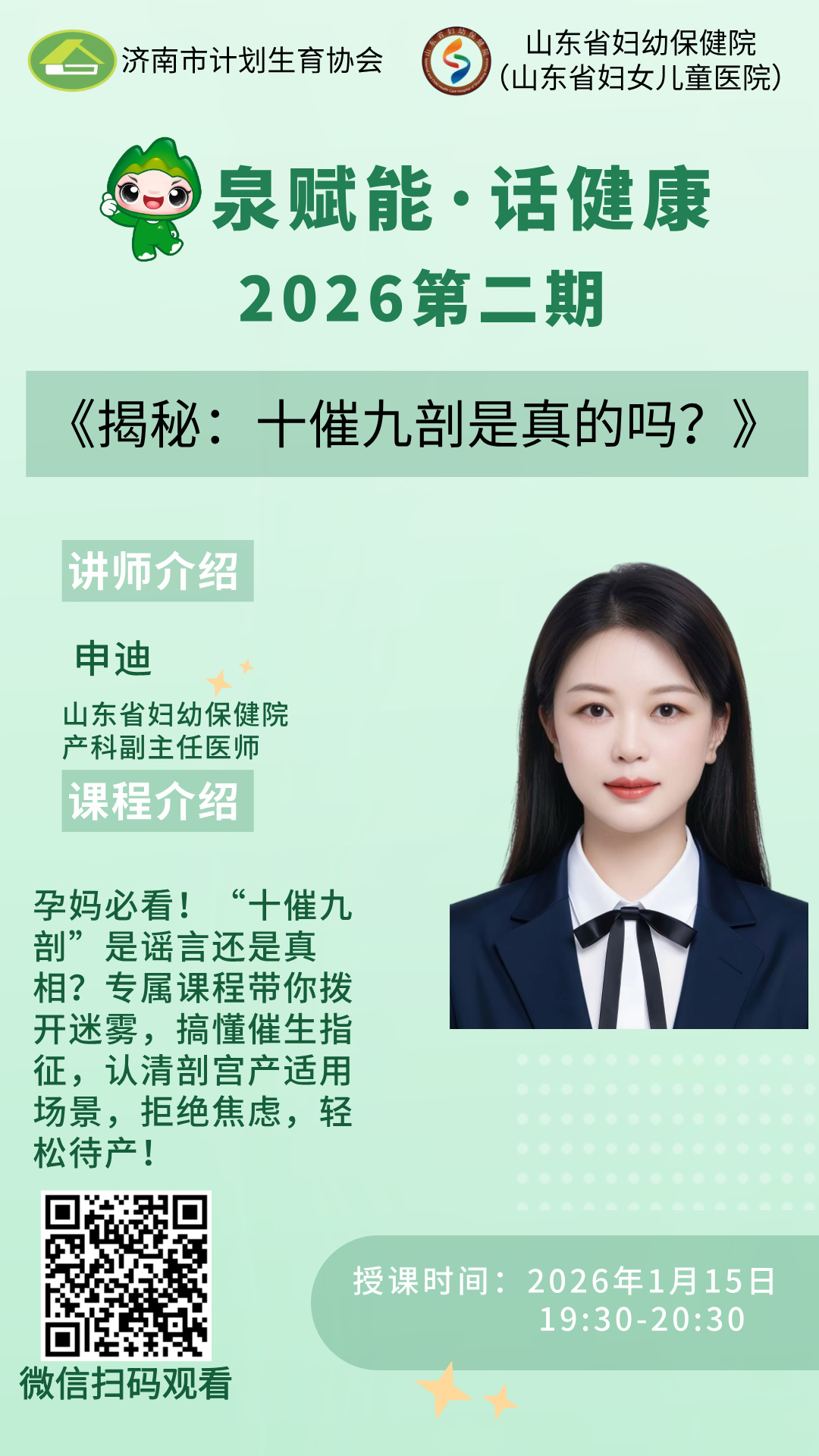 本期“泉赋能·话健康”直播课堂由山东省妇幼保健院产科副主任医师申迪主讲,题目是《揭秘:一催九剖是真的吗?》,欢迎广大群众收听收看!
