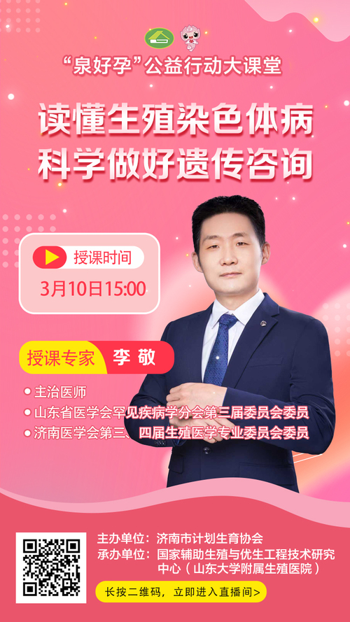 “泉好孕”第十一期课堂由山东省医学会罕见疾病学分会第三届委员会委员李敬主讲,题目是《读懂生殖染色体病 科学做好遗传咨询》,欢迎广大群众收听收看!